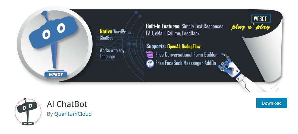 ¿Y has oído hablar del WPBot/ChatBot? Es un plugin tan fácil de usar que te dejará con la boca abierta. ¿Quieres un chatbot en tu WordPress? ¡Listo! Funciona con DialogFlow, OpenAI GPT-3 y muy pronto con ChatGPT y GPT-4. Y lo mejor es que lo puedes gestionar todo desde el panel de WordPress.