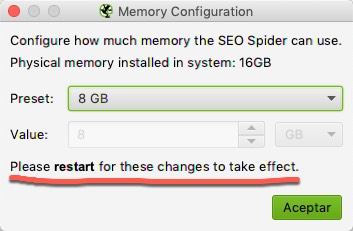 Configurando la memoria de Screaming Frog