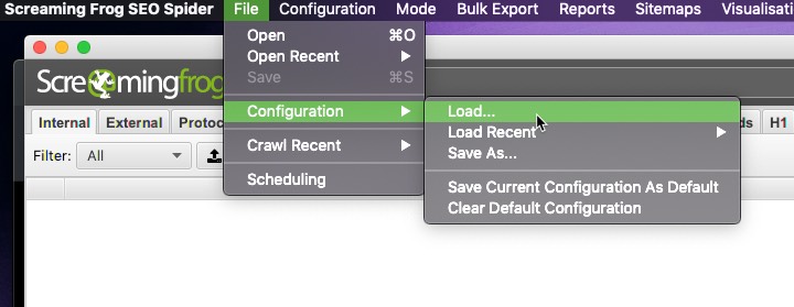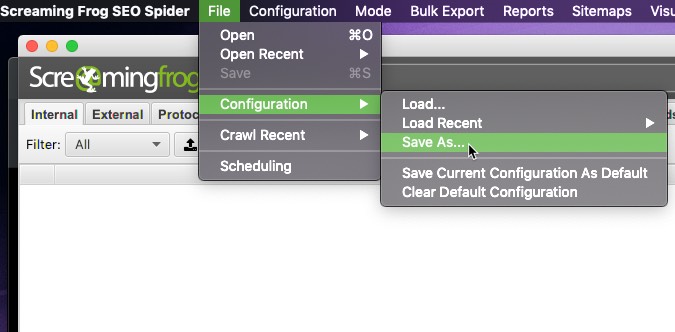 Configuración de Screaming Frog