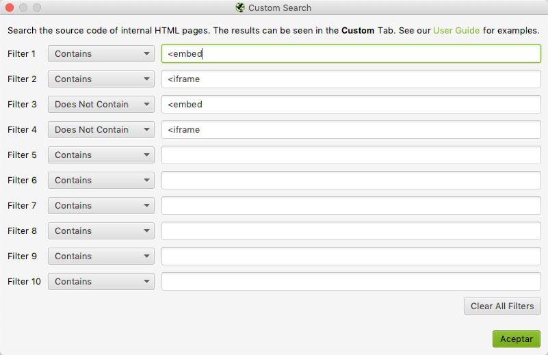 Después de las configuraciones de araña, siempre necesitamos establecer filtros personalizados para cosas específicas que queremos mostrar en nuestro rastreo.