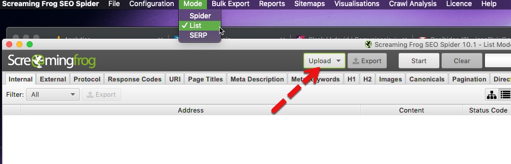 • Apagar el sistema o salir de Screaming Frog provocará la pérdida de los datos de rastreo.