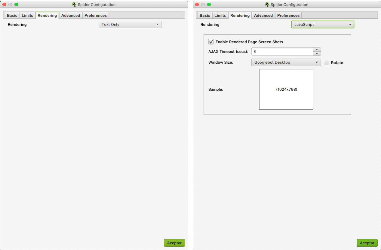 Configuration > Spider > Basic > Rendering